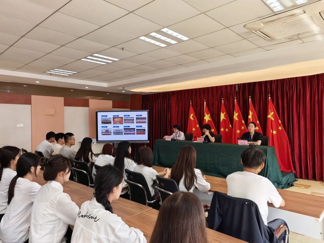 航空乘务学院在东辅楼3楼会议室举行2025级高铁精英班见面会,航空乘务学院院长李明珠、执行院长杨丽璇、航空乘务学院全体辅导员参会、本次活动由副院长方未主持。