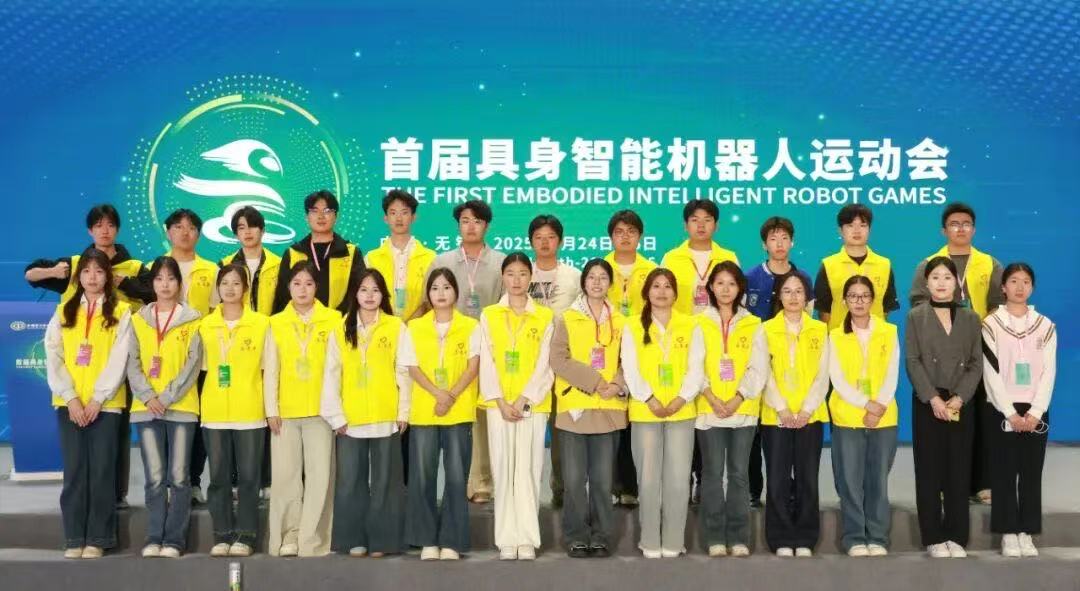 近日,由中国电子学会主办,无锡市惠山国有投资控股集团有限公司、中国人形机器人百人会共同承办,中央广播电视总台社教节目中心支持的“首届具身智能机器人运动会”在无锡市惠山区成功举办。在这场对具身智能领域前沿创新成果与多元化应用潜力集中展示的盛会上,江南影视艺术职业学院36名志愿者以专业素养和热情服务,成为了运动会现场一道“亮黄色”的风景线,为运动会的顺利举办提供了保障。