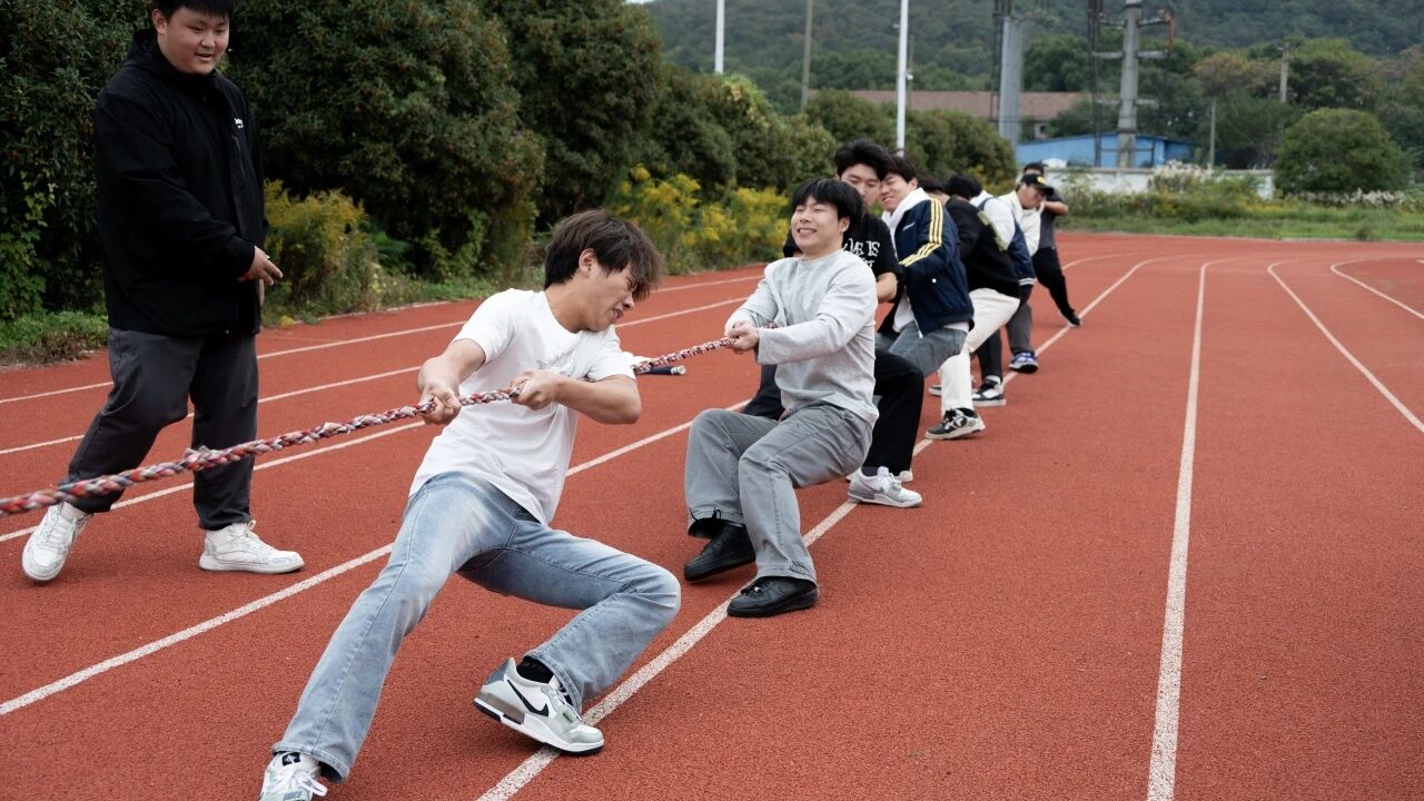 赛场上,各支队伍紧握长绳,身体后倾,将力量凝聚于一身,有的队员咬紧牙关,额角渗出细密的汗珠,有的队员眼神坚毅,在口号声中奋力后拉,那根彩绳在双方的拉扯中来回摆动,每一次僵持都牵动着在场所有人的心跳。