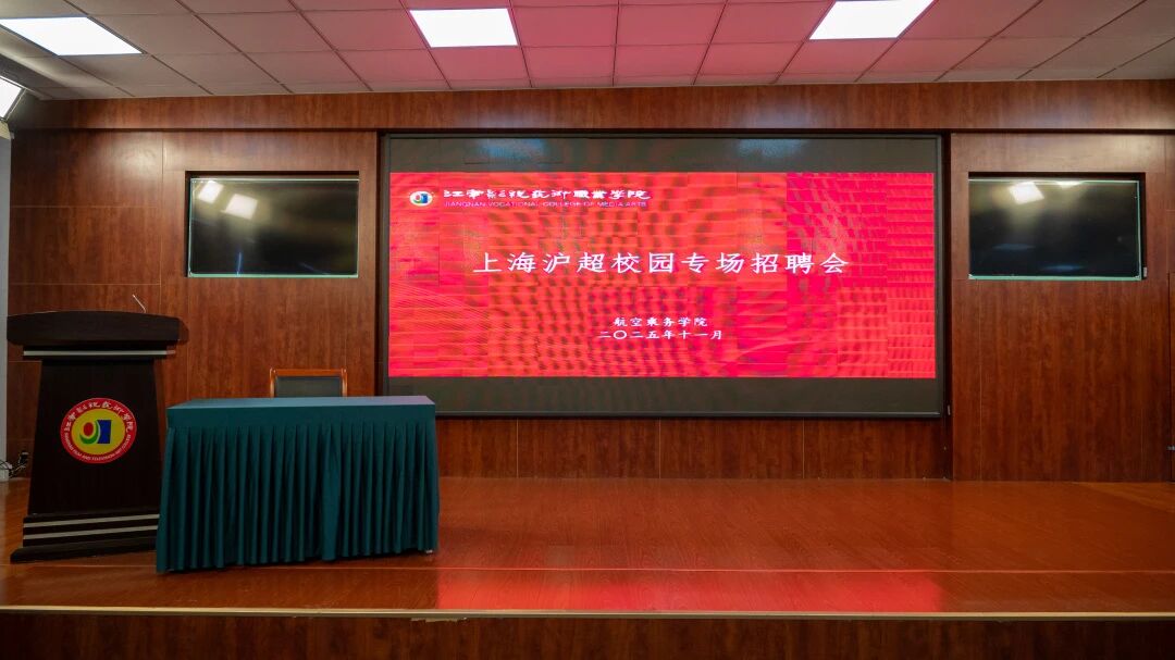 航空乘务学院联合上海沪超会务服务有限公司、上海羿铁轨道交通有限公司举办的校园专场招聘会,在德艺楼5楼成功举行。