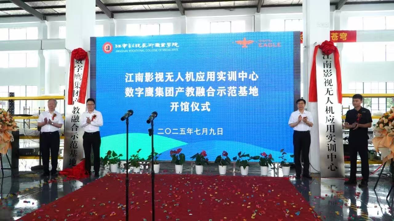 7月9日,江南影视艺术职业学院与江苏数字鹰科技股份有限公司共同打造的“数字鹰产教融合示范基地”、“江南影视无人机应用实训中心”隆重揭牌。这是继今年2月江南影视-数字鹰低空经济产业学院成立以来,江影抢抓低空经济新机遇,与数字鹰科技携手探索产教融合新路径,实现人才培养与产业发展需求相适应、相融合的又一有力举措。