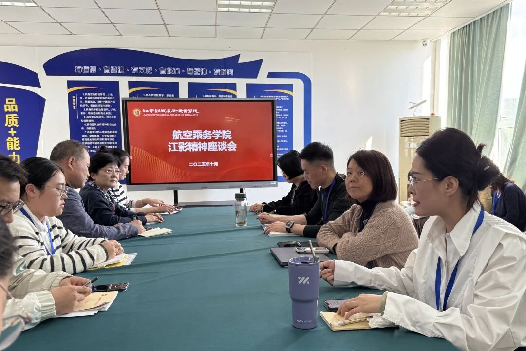 10月29日下午,航空乘务学院“江影精神”座谈会顺利举行。学院领导、各教研室主任及全体辅导员和教师代表齐聚一堂,共话精神传承,部署征文。