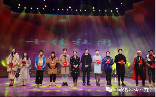 学生社团,作为大学生活中的重要组成部分,不仅反映了校园文化,更为大学生活注入了缤纷的色彩与无穷的活力。如今我校已经有30多个社团,每一个社团都在积极的发展,为我们的大学生活注入了无限的活力。蓝天礼仪社、江影模特社、拉丁炫舞社、乐乐团、桐煌汉服社、民族文艺社、2Ncos社、港台音乐歌曲社、山海朗诵、元素街舞社获得了十佳社团。由朱先胜处长和朱文燕书记为十佳社团进行颁奖。