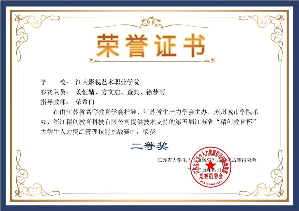 在第五届江苏省“精创教育杯”大学生人力资源管理技能挑战赛中,荣获2个二等奖。