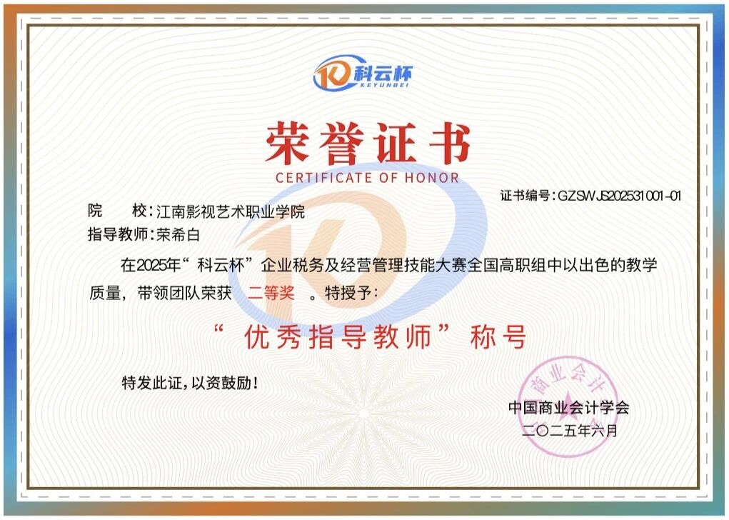 在2025年“科云杯”企业税务及经营管理技能大赛全国高职组中,荣获2个二等奖。