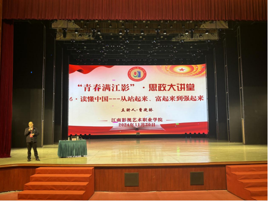2024年11月20日,我校曹建林院长为毕业生们带来了第六期思政讲座,讲座主题:“读懂中国——从站起来、富起来到强起来”。曹建林院长通过图文展示,介绍了中国共产党领导中国人民接续奋斗三部曲,他引入案例,结合历史,生动讲述了中国从“站起来——立国”、“富起来——富国”到“强起来——强国”的改革发展历程。