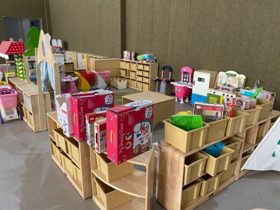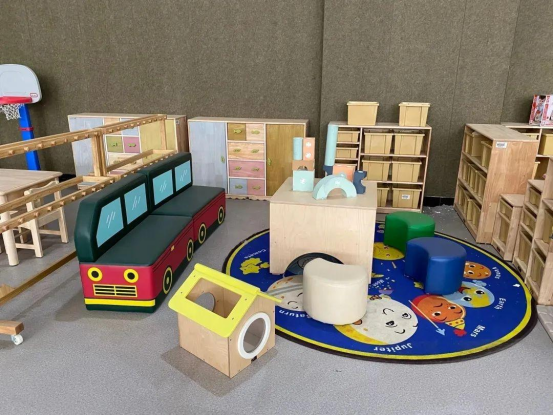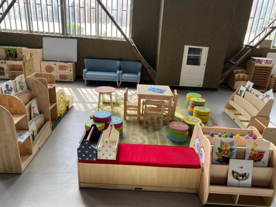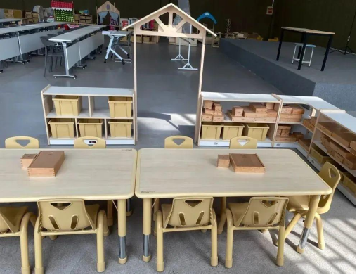 实验幼儿园整套设备:包含多个主题活动区,奥尔夫音乐区、蒙台梭利教具区、绘本阅读区、建构区、美工区、益智区等,配备符合幼儿人体工学的原木家具桌椅、多媒体互动白板、各种拼装积木和教玩具等;