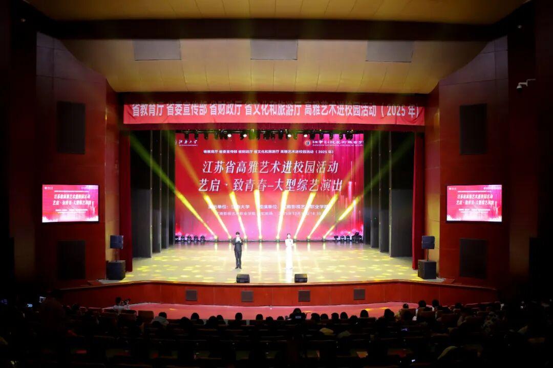 当舞台光影渐次亮起,青春的脉动与艺术的回响在此交叠。近日,在江南影视艺术职业学院彩虹剧院,一场名为“艺启·致青春”的大型综艺演出在这里温情上演。本次活动隶属江苏省教育厅、省委宣传部、省财政厅、省文化和旅游厅联合推动的“高雅艺术进校园(2025)”项目,江南大学以多元艺术形态为笔,绘就了一幅贯通传统意蕴与现代表达的校园美育画卷。