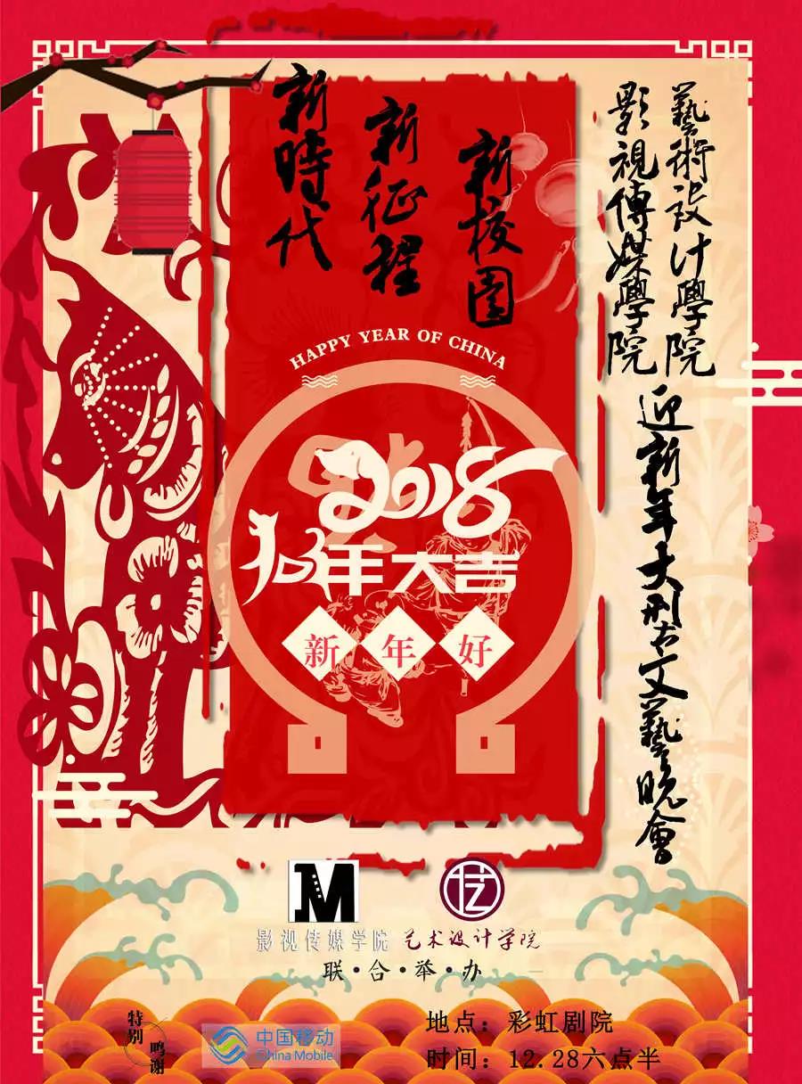 2017年12月28日晚18:30,影视传媒学院与艺术设计学院精心筹备已久的迎新年大型元旦文艺晚会,在彩虹大剧院隆重举办!