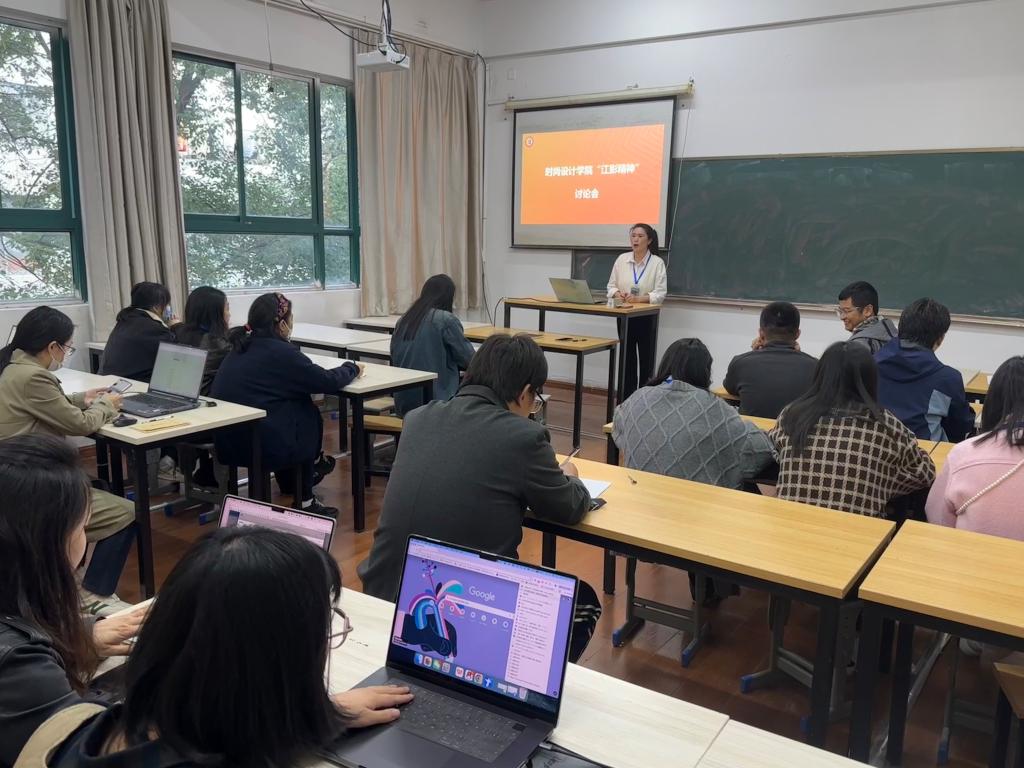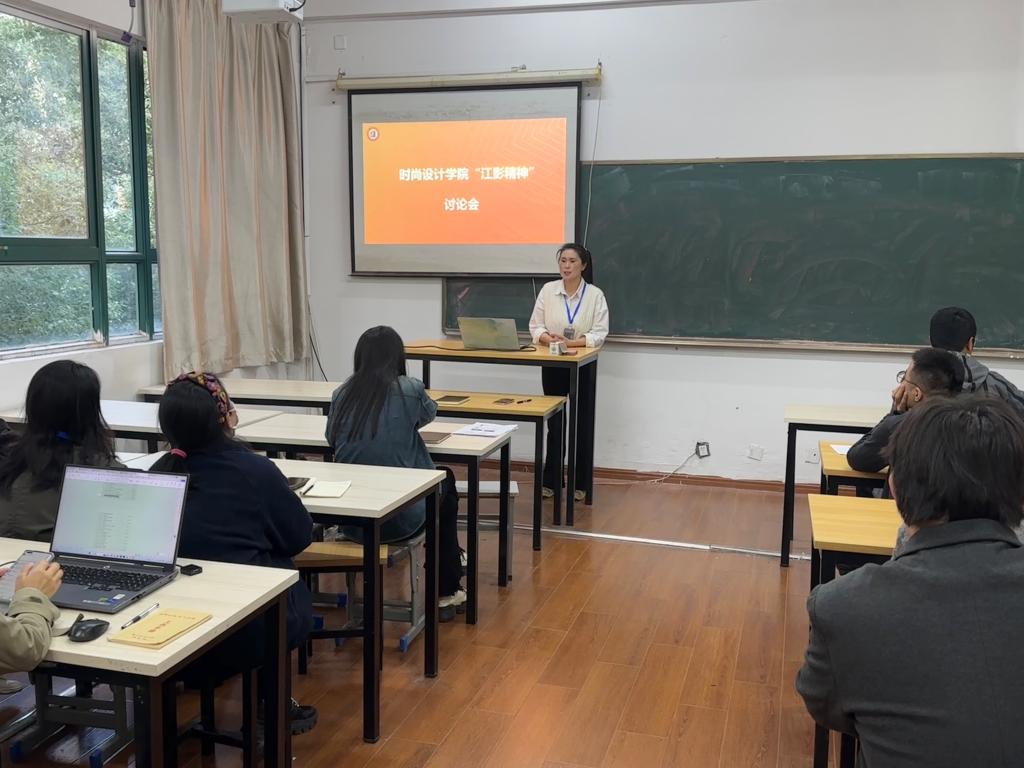 10月22日下午4点20分,时尚设计学院“江影精神”专题讨论会在S202教室顺利召开。会议由学院执行院长钱玉华主持,唐舟老师宣读相关文件,全体教师参与研讨。