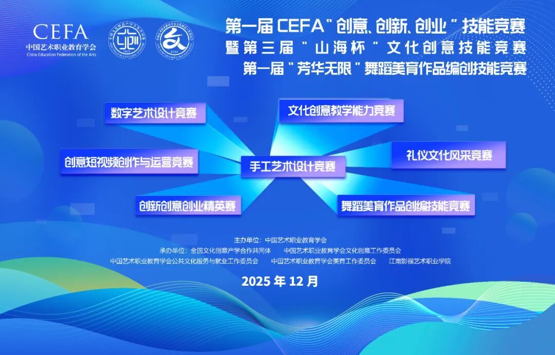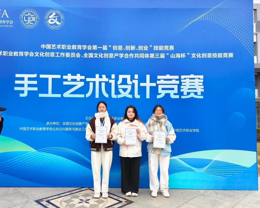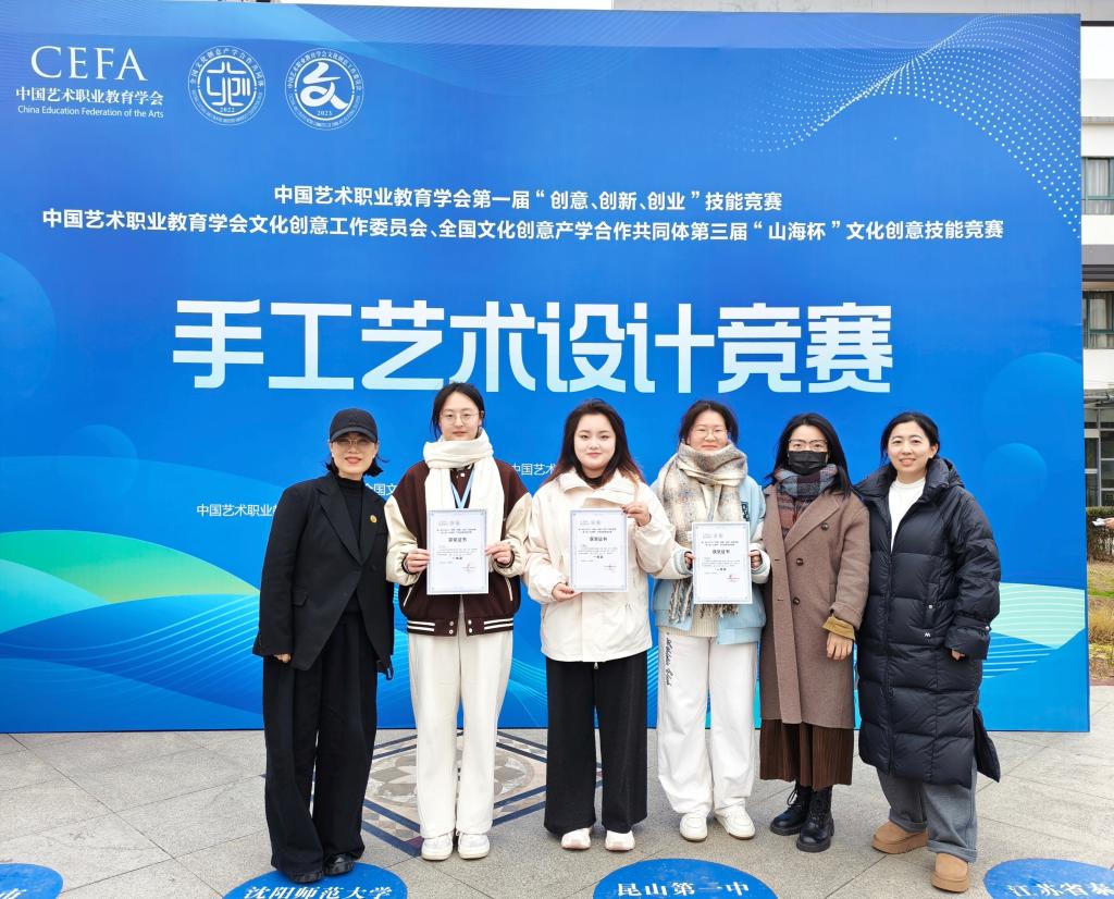 2025年12月21日,第一届CEFA“创意、创新、创业”技能竞赛暨第三届“山海杯”文化创意技能竞赛结果正式公布,时尚设计学院教师温苏皖凭借扎实的教学功底、新颖的教学设计和出色的现场表现,在众多选手中脱颖而出获得文化创意教学能力竞赛赛项二等奖;由钟琦、夏兰老师指导的学生杨雅婷、周效雅、周岑柳团队荣获手工艺术设计竞赛赛项一等奖;学生陆雨涵、孙晨雨、张梦梦团队荣获手工艺术设计竞赛赛项二等奖。