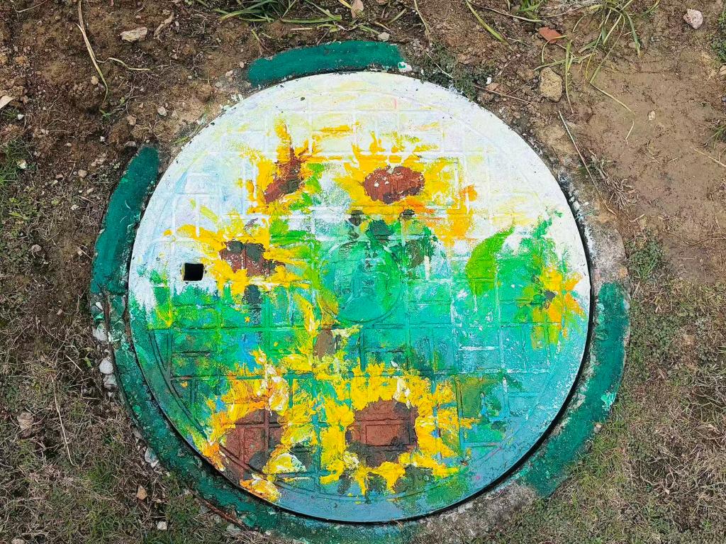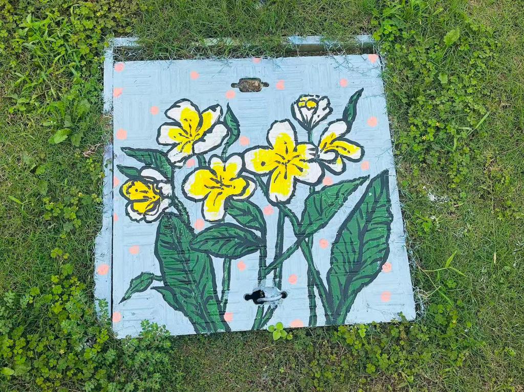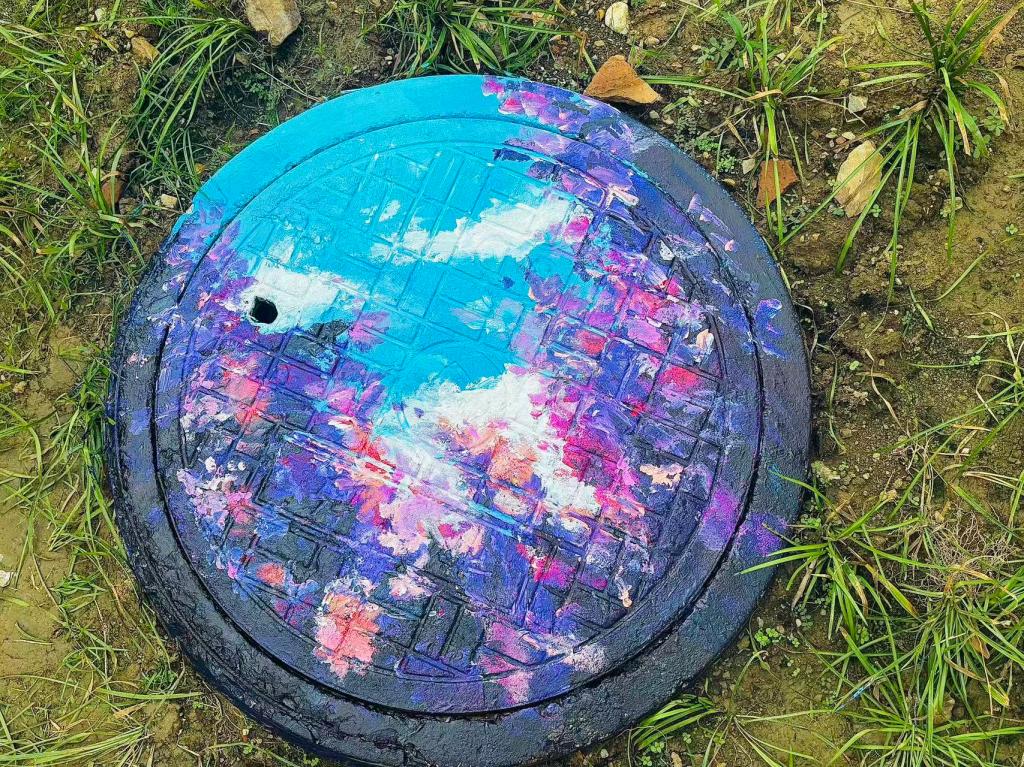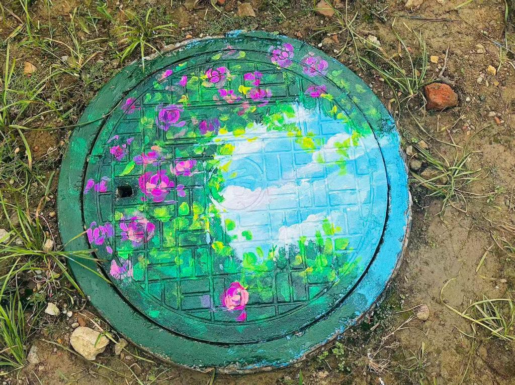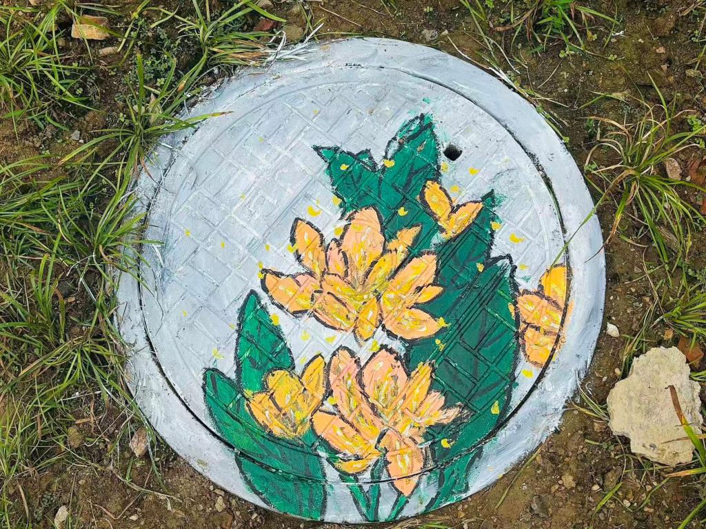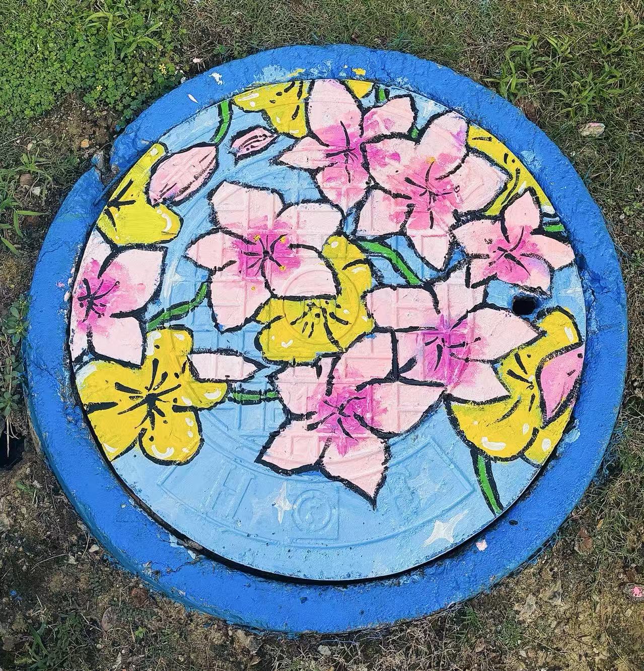 此次活动以“美化校园景观,传递艺术温度”为目标,师生们共完成10个井盖的创意绘画。创作灵感源于自然风景与民俗元素,同学们拿起画笔,用明快撞色勾勒出活泼图案,充满青春活力。原本单调的井盖,在师生们的巧手下,变成了一个个小巧精致的“地面艺术品”。