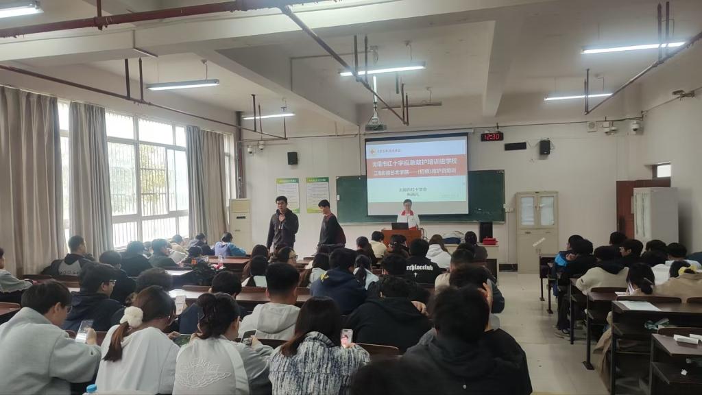 11月9日,时尚设计学院30名师生在第一教学楼C104教室参加了由无锡市红十字组织的以“学急救技能,筑生命防线——‘百万救护’守护行动”为主题的应急救护培训活动。
