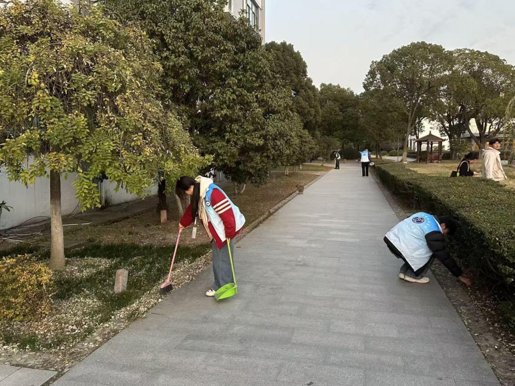 为践行环保理念、美化校园环境,12 月 9 日,时尚设计学院组织志愿者团队在励志楼周边开展校园清洁专项行动,用实际行动守护校园环境、传递文明风尚。