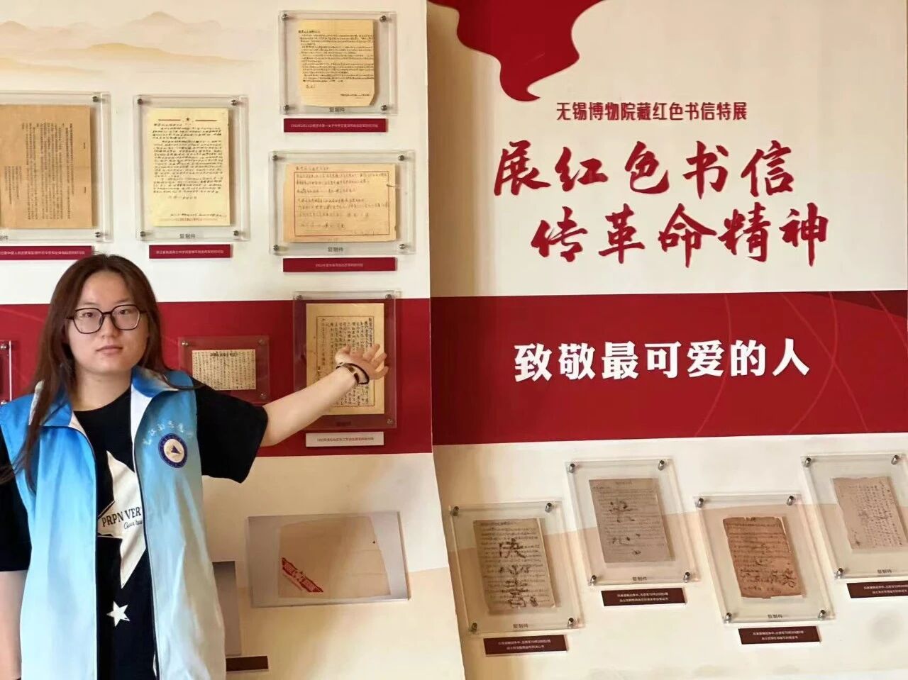 抵达无锡博物院,一股庄重而肃穆的气息扑面而来。在“红色初心”实践团队长陆嘉禾的带领下,同学们有序进入展厅,首先映入眼帘的是关于无锡地区革命历史的展区。一幅幅珍贵的照片、一件件历经沧桑的文物,无声地讲述着那段烽火连天的岁月。从辛亥革命到抗日战争,再到解放战争,每一个历史节点都凝聚着无数革命先烈的鲜血与汗水。同学们驻足凝视,时而低头沉思,时而相互讨论,那份对英雄的敬仰之情油然而生。