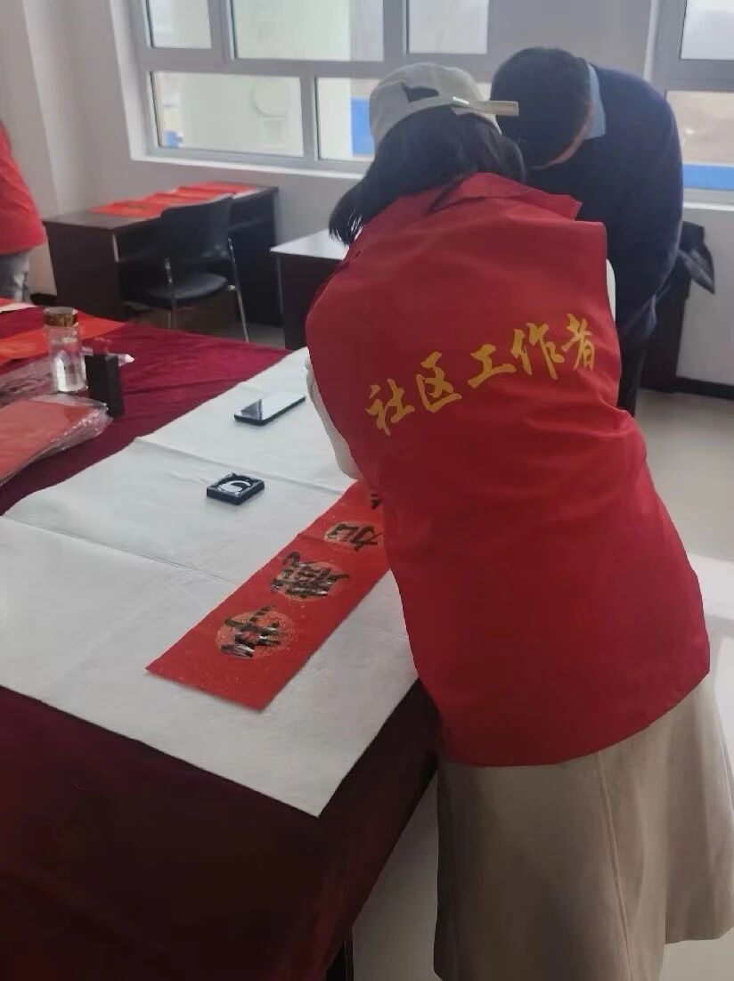 除了参加社区的清洁工作,张馨栯同学还积极参与了社区迎新春的布置工作。同社区的负责人们一起,为社区贴上了象征团圆与祝福的春联,将对新年的美好祝愿具象化,为社区增添了喜庆、幸福的气氛。