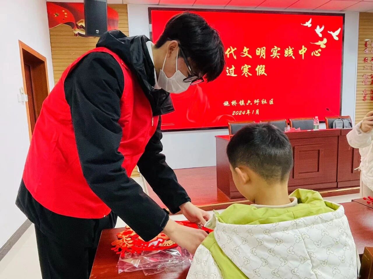 卞宇航同学参加六圩社区的寒假特色实践课程志愿者,通过本次活动,卞宇航同学体会到了在外父母的艰辛,增强了自身的责任心和社会实践能力。在这一周的时间里,卞宇航同学主要陪着小朋友们完成各种各样的手工任务,观看一些富含中国历史文化的视频,这些都是祖国的新一代未来,首先了解中国文化更有利于增强小朋友的名族文化自信。