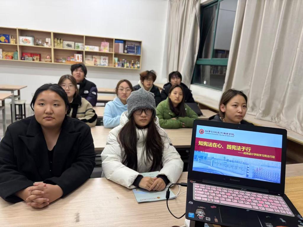 活动现场,师生共同学习宪法核心要义与发展历程,明晰宪法作为国家根本大法的重要地位,以及与青年成长成才的紧密关联。结合时尚设计专业特色,活动特别设置宪法知识互动竞答、法治主题创意分享环节,学子们踊跃参与、积极建言,用鲜活的表达传递对宪法精神的理解,现场氛围庄重而热烈。