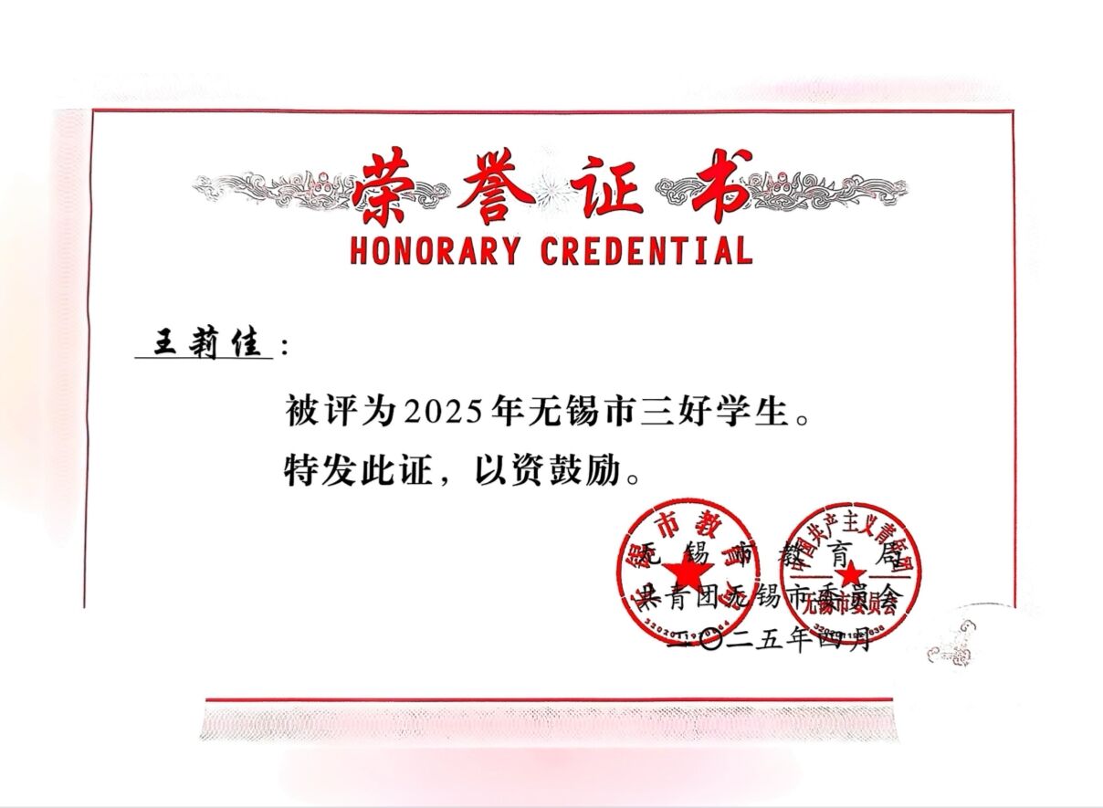 王莉佳同学思想上积极追求进步,品学兼优,全面发展,用实际行动诠释着三好学生的深刻内涵。相信在未来,她能继续砥砺前行,不断突破自我,在追求梦想的道路上绽放更加耀眼的光芒,充分展现新时代优秀大学生的卓越风采。
