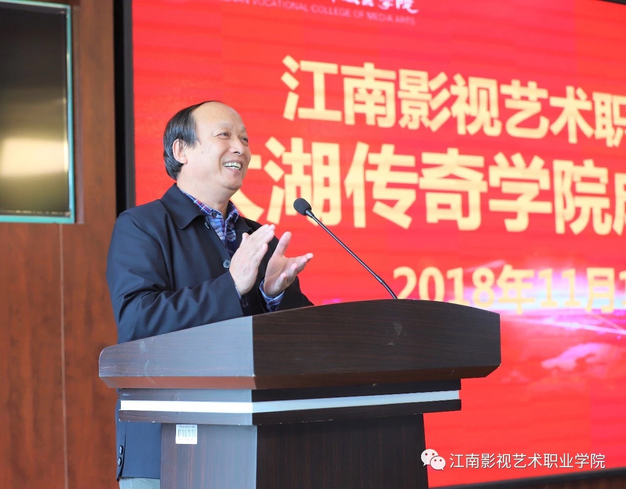 “太湖传奇学院在学校党委和各位院领导的亲切关怀和亲自指导下,在全院师生的积极参与下,今天隆重成立了,是学院之幸,师生之幸。同时它又是我校创新实践教学,提升品牌知名度,发扬光大中华传统文化的又一举措,亦将开创艺术学院新的里程碑。我坚信,在学院党委的坚强领导下,在传奇学院全体师生的辛勤努力下,定将以崭新的姿态焕发青春的活力,展望新时代,迎接新挑战,立志新担当,开创新作为,再创新辉煌。”